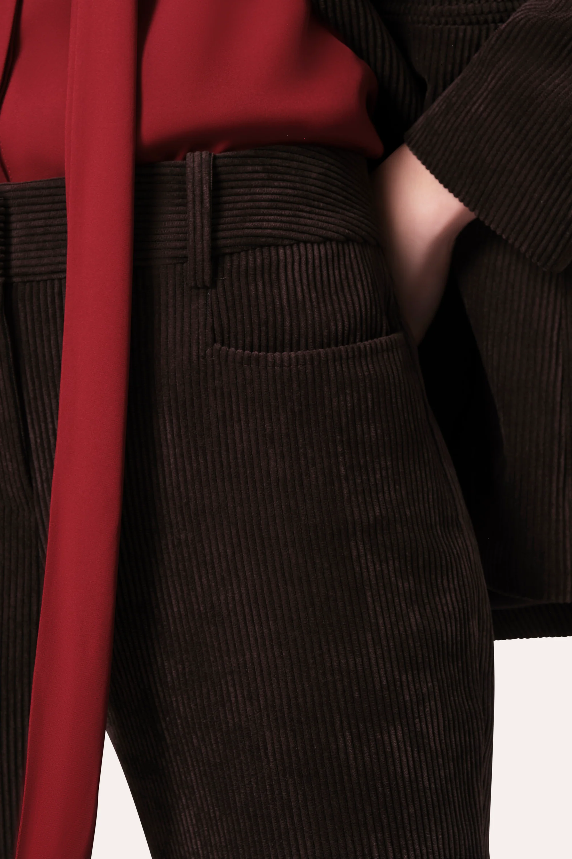 The fit-and-flare pant, reimagined in soft corduroy. Elevated by discreet side slits and a fluid silhouette, it balances tailored polish with ease. Wear with sculptural knits or layered head-to-toe.