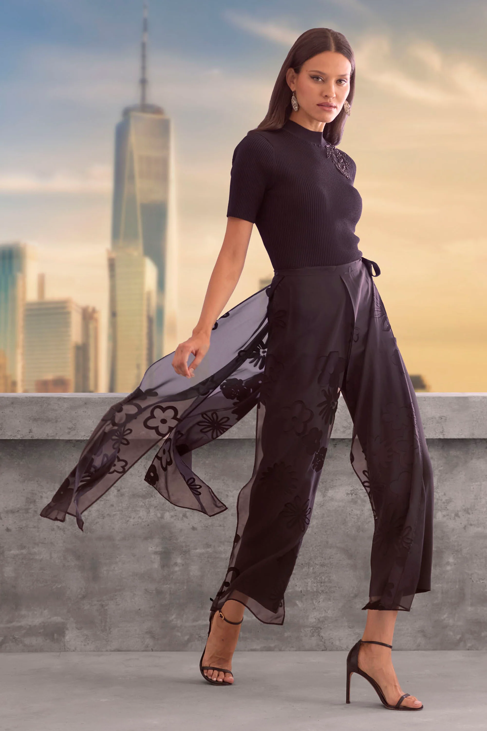 Elevate your wardrobe with Elie's modern take on the season's must have Ribbed Sweater. Sleek and body skimming, all eyes are on the intricate embroidery & beading. A true collector's piece.